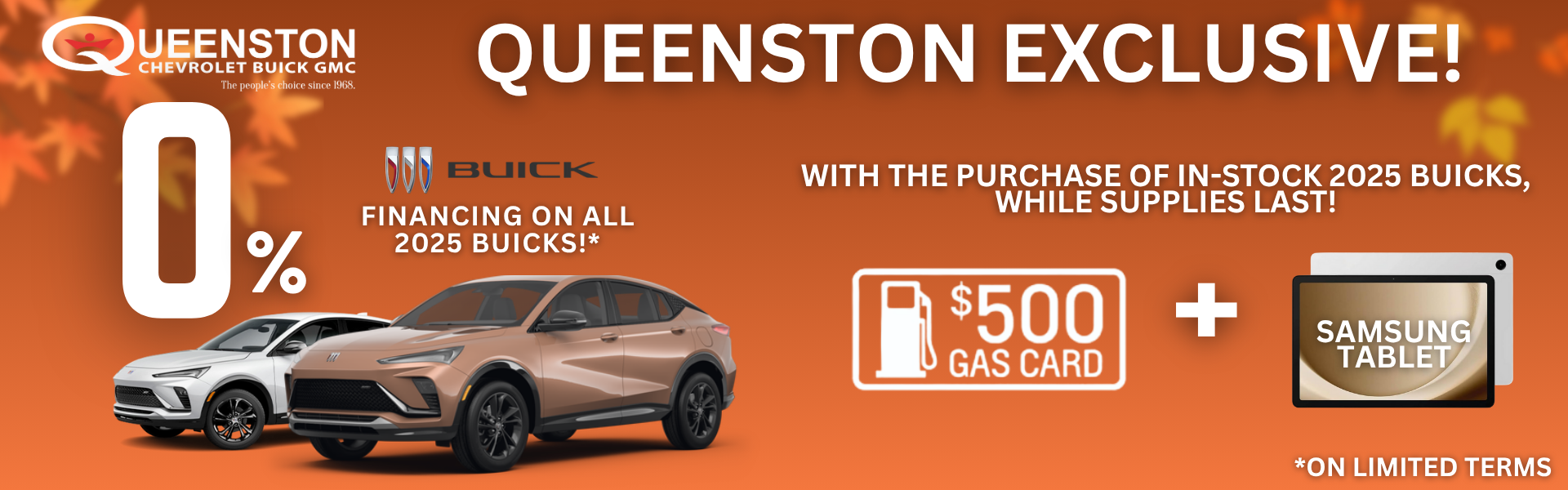 At Queenston Chevrolet Buick GMC, customer service and dedication is our priority. We also pride ourselves in having the Chevrolet, Buick or GMC vehicle you want at the right price. At Queenston Chevrolet Buick GMC, we have a complete collection of brand-new Chevrolet, Buick and GMC vehicles at valuable prices.